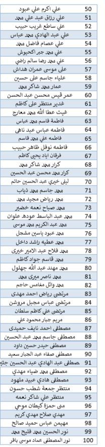 أسماء الطلبة المقبولين في كلية الهندسة قسم الهندسة المدني للدراسة الصباحي