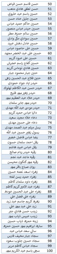 أسماء الطلبة المقبولين في كلية الادارة والاقتصاد قسم المحاسبة للدراسة الصباحي