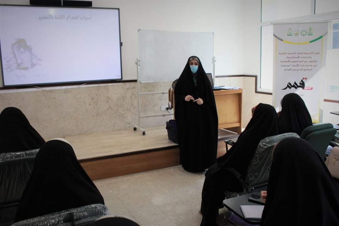 ضم ختام الكورس التدريبي الأول محاضرات الأخلاق للأستاذ المساعد الدكتور طلال الكمالي عميد كلية العلوم الاسلامية، والثقة بالنفس للقائد بتقديم المدربة المعتمدة نبأ القريشي، حيث قدمت المحور التدريبي الجديد الذي دخل حيز التنفيذ ضمن متطلبات الكورس الأول، وبهذا المحور اكملت المتطلبات الرئيسة تطبيقيا ونظريا لكل المواد المخصصة للتدريب، وسط تفاعل فعال من قبل المشتركين في البرنامج.