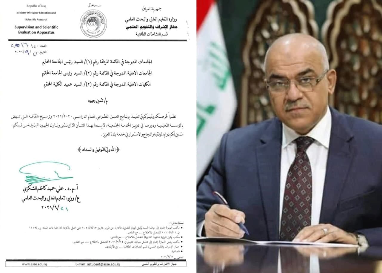 ثمن وزير التعليم العالي والبحث العلمي الاستاذ الدكتور نبيل كاظم عبد الصاحب جهود جامعة وارث الانبياء(عليه السلام) على حرصها وتميزها في تنفيذ برنامج العمل التطوعي وترسيخ هذه الثقافة التي تنهض بالمؤسسات التعليمة متمنين دوام الموفقية والنجاح خدمة لبلدنا العزيز.