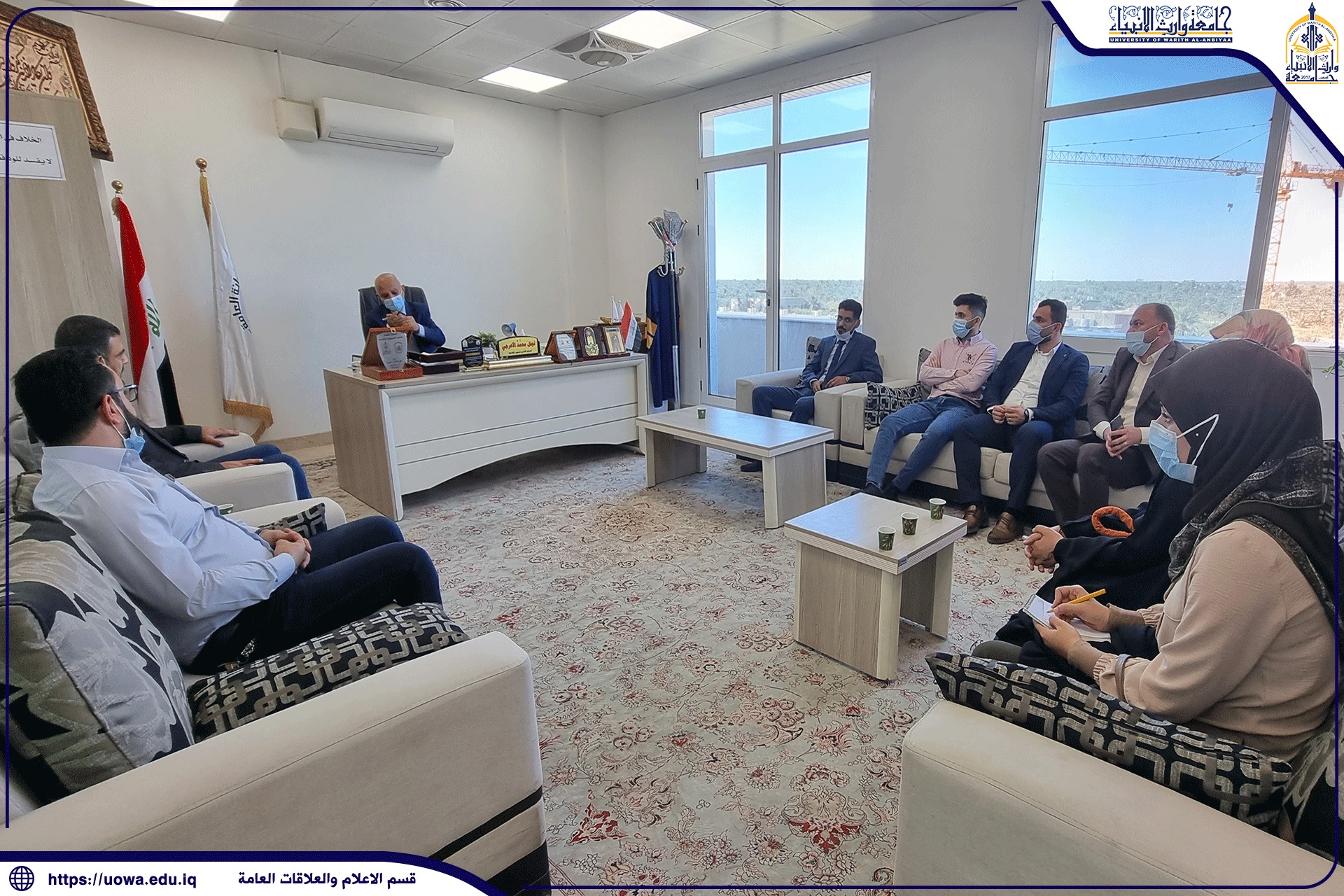 حيث ابدى الوفد ارتياحة لماشاهده من التزام عالي بالإجراءات الوقائية داخل اروقة الجامعة وتجاوز عدد الملقحين ال90‎%‎ من السادة اعضاء هيئة التدريس والطلبة
