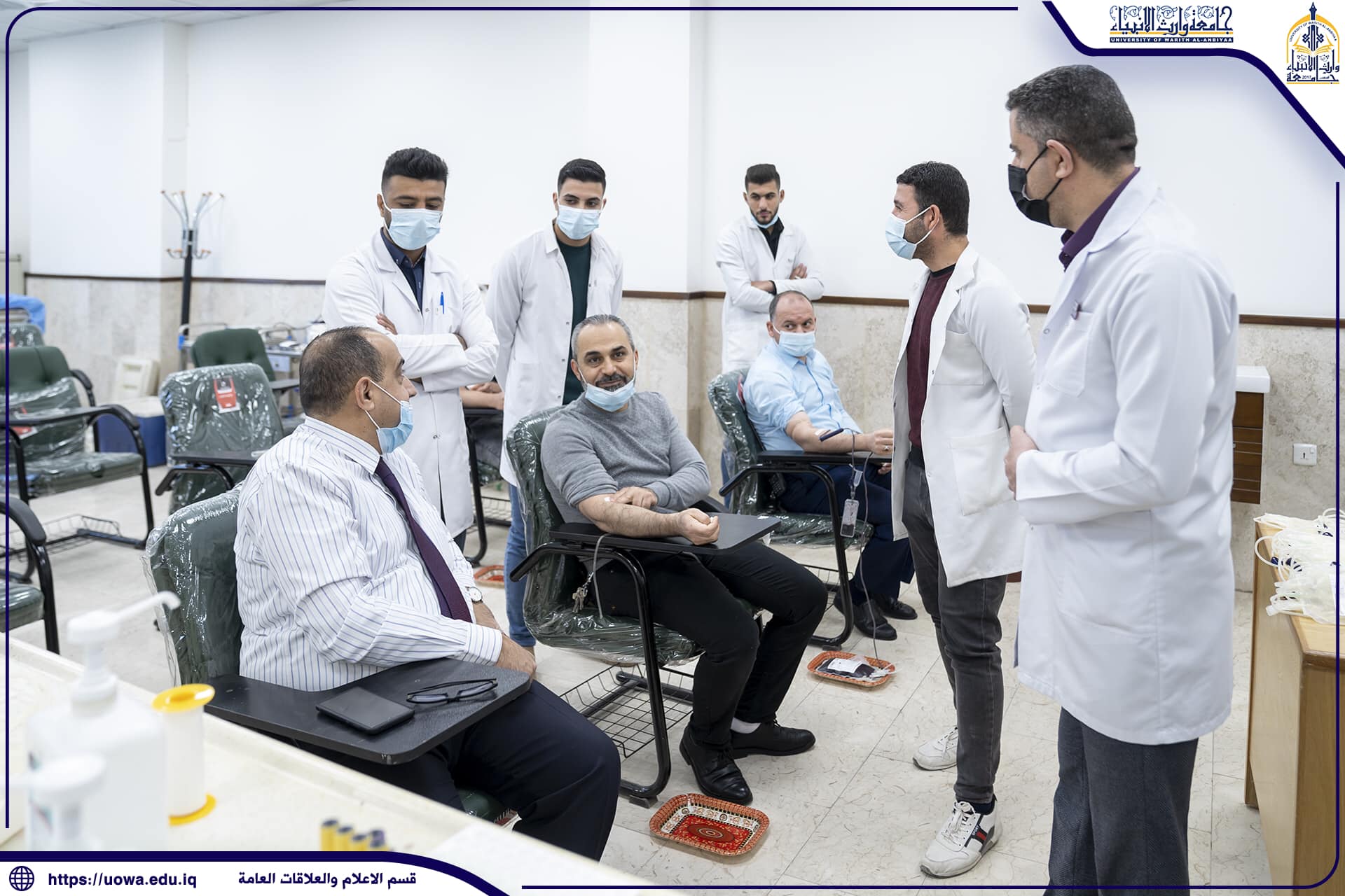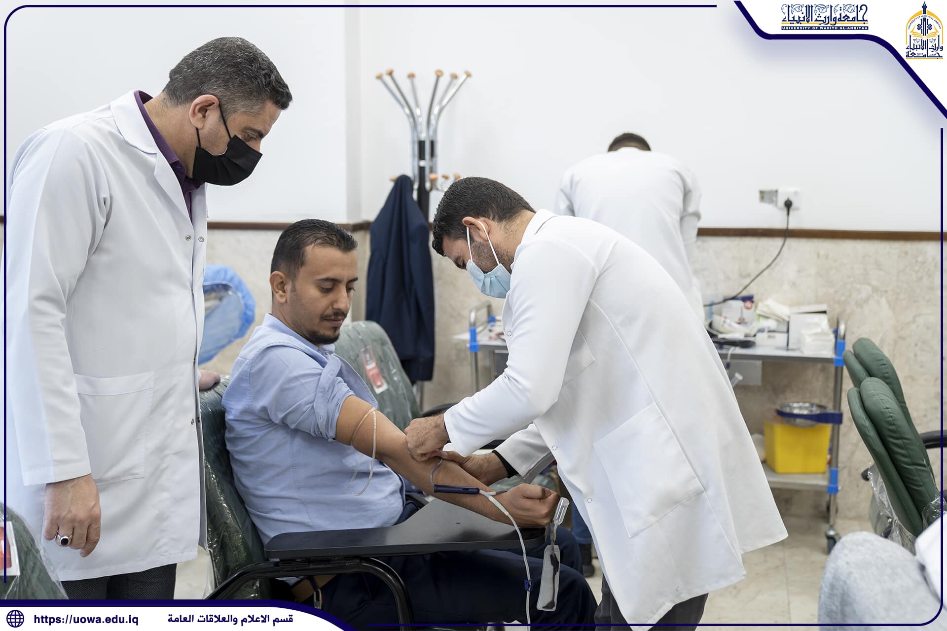 أقامت كلية التمريض في جامعة وارث الانبياء(عليه السلام) وبالتعاون مع دائرة صحة كربلاء المقدسة حملة للتبرع بالدم لمستشفى الامراض السرطانية وباقي المستشفيات في المحافظة، وجاءت هذه الحملة التي تقام للسنة الثالثة في الجامعة للمساهمة في مساندة المرضى بمستشفيات كربلاء المقدسة ممن هم بحاجة للتبرع بالدم، إذ اشترك في الحملة اساتذة ومنتسبي وطلبة الجامعة تقدمهم السيد رئيس الجامعة الأستاذ الدكتور ابراهيم سعيد الحياوي، بالاضافة إلى أن الحملة كانت بمثابة دروس عملية لطلبة كلية التمريض لأهمية تخصصهم من الجانب الانساني.