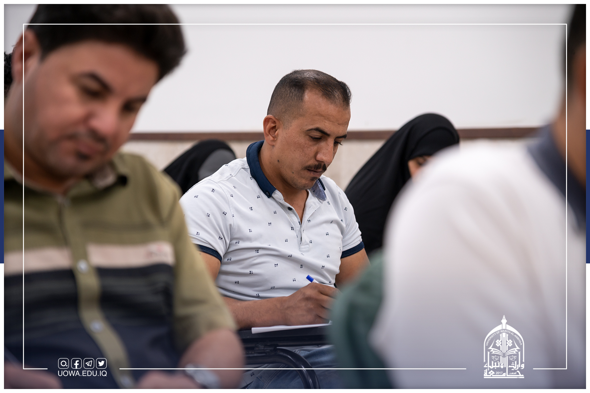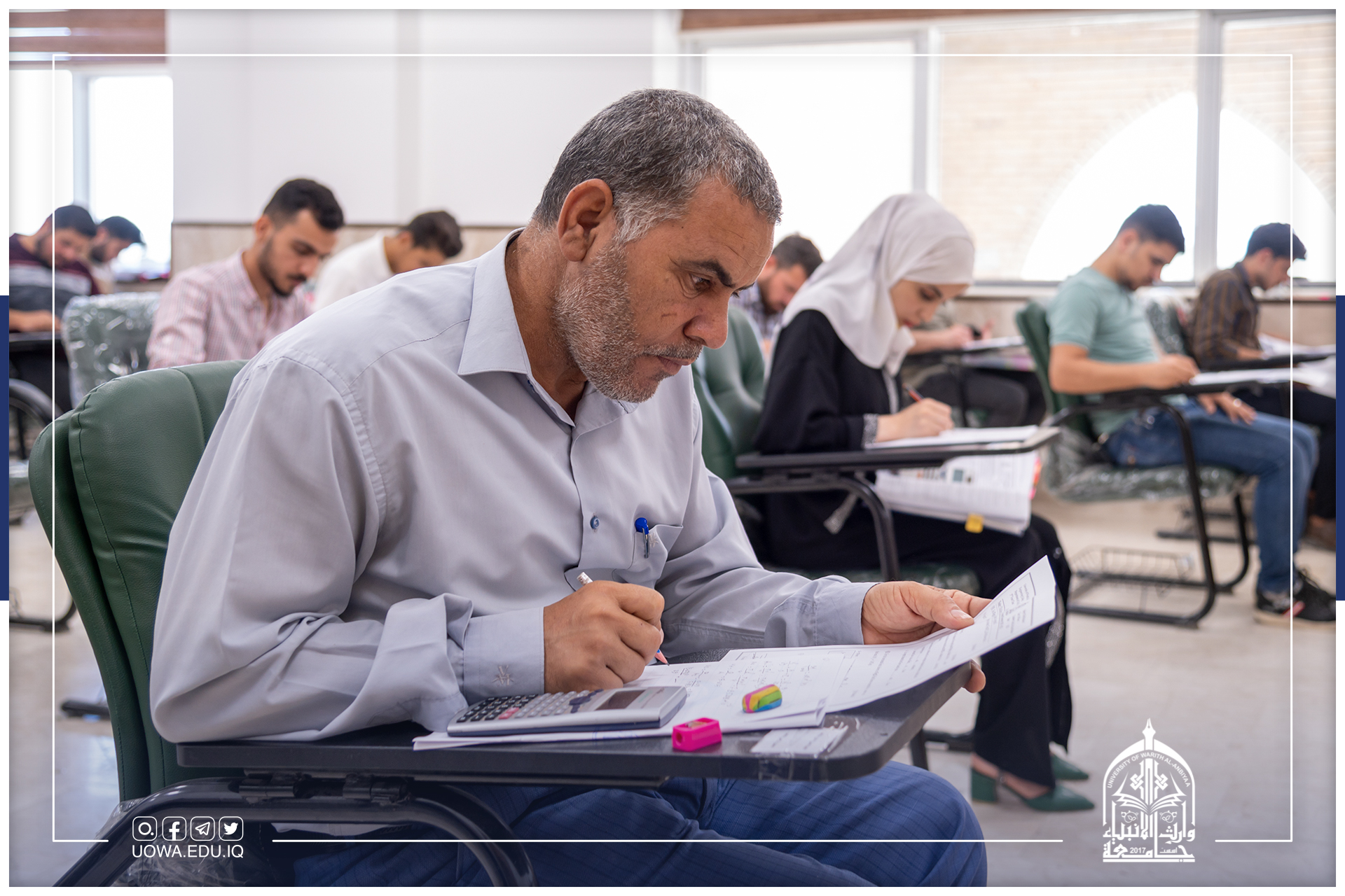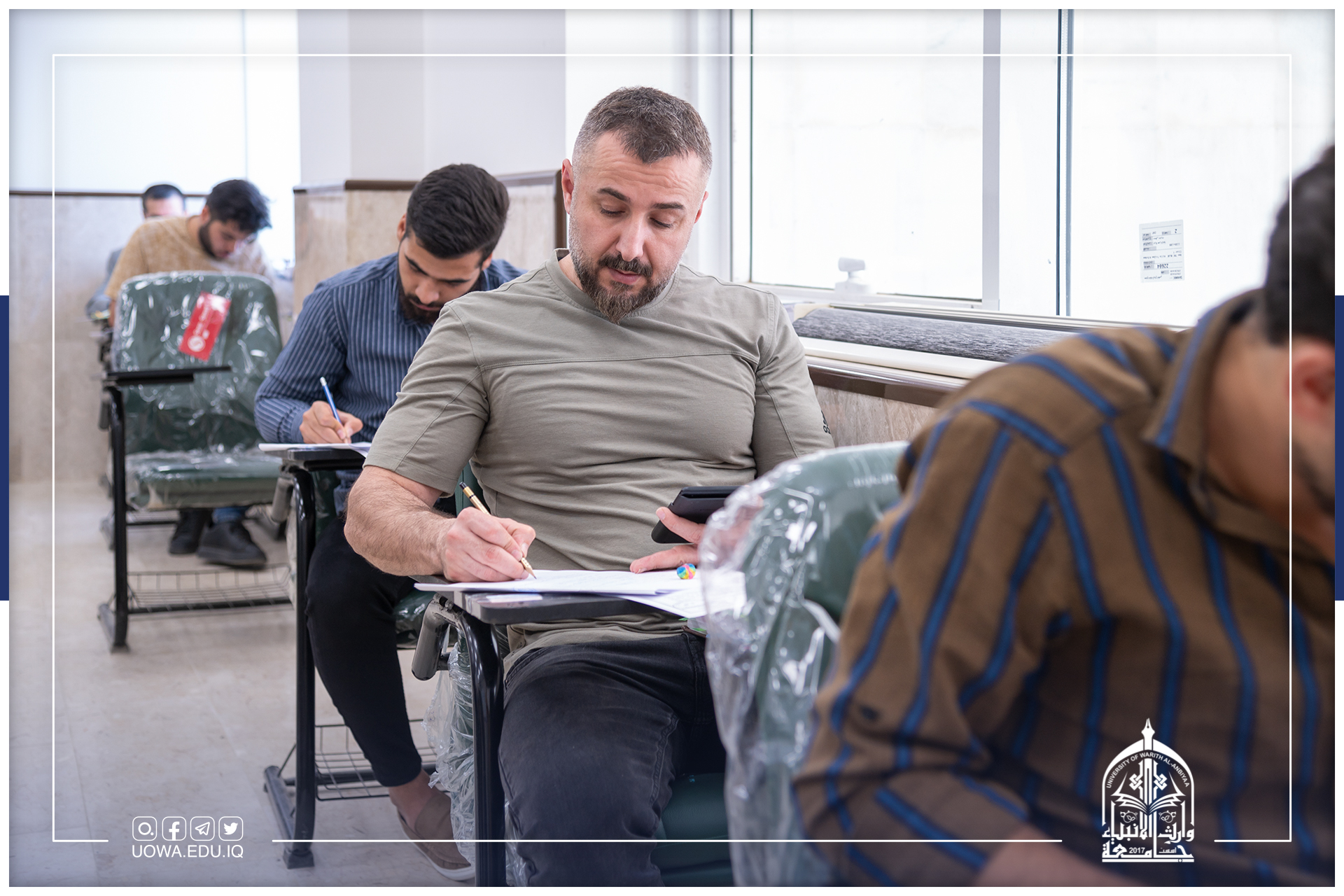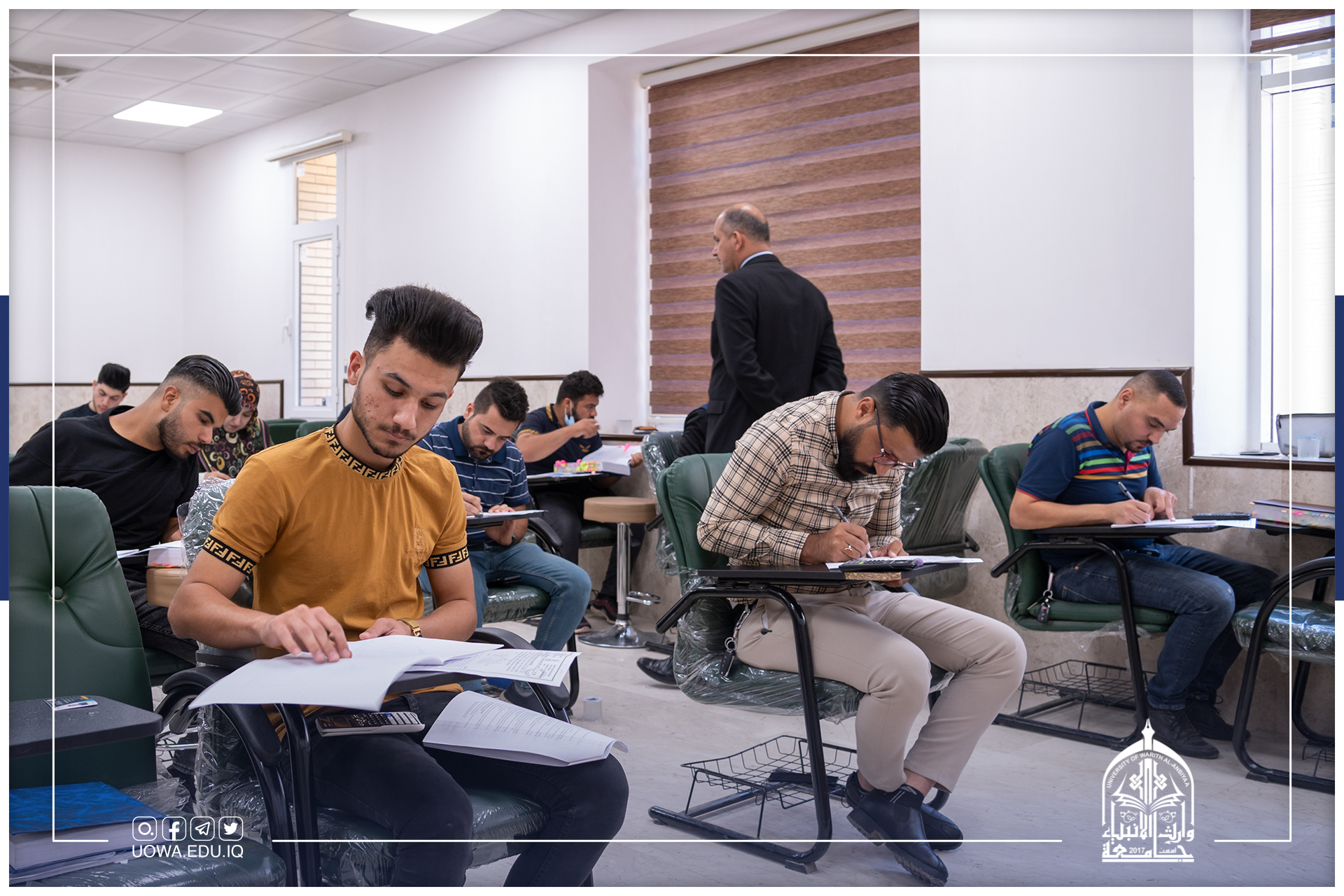 الامتحانات النهائية للعام 2021-2022 مستمرة، وطلبة كليات وأقسام جامعة وارث الانبياء(عليه السلام) يؤدونها الكترونياً وحضورياً ولكلا الدراستين الصباحية والمسائية.
