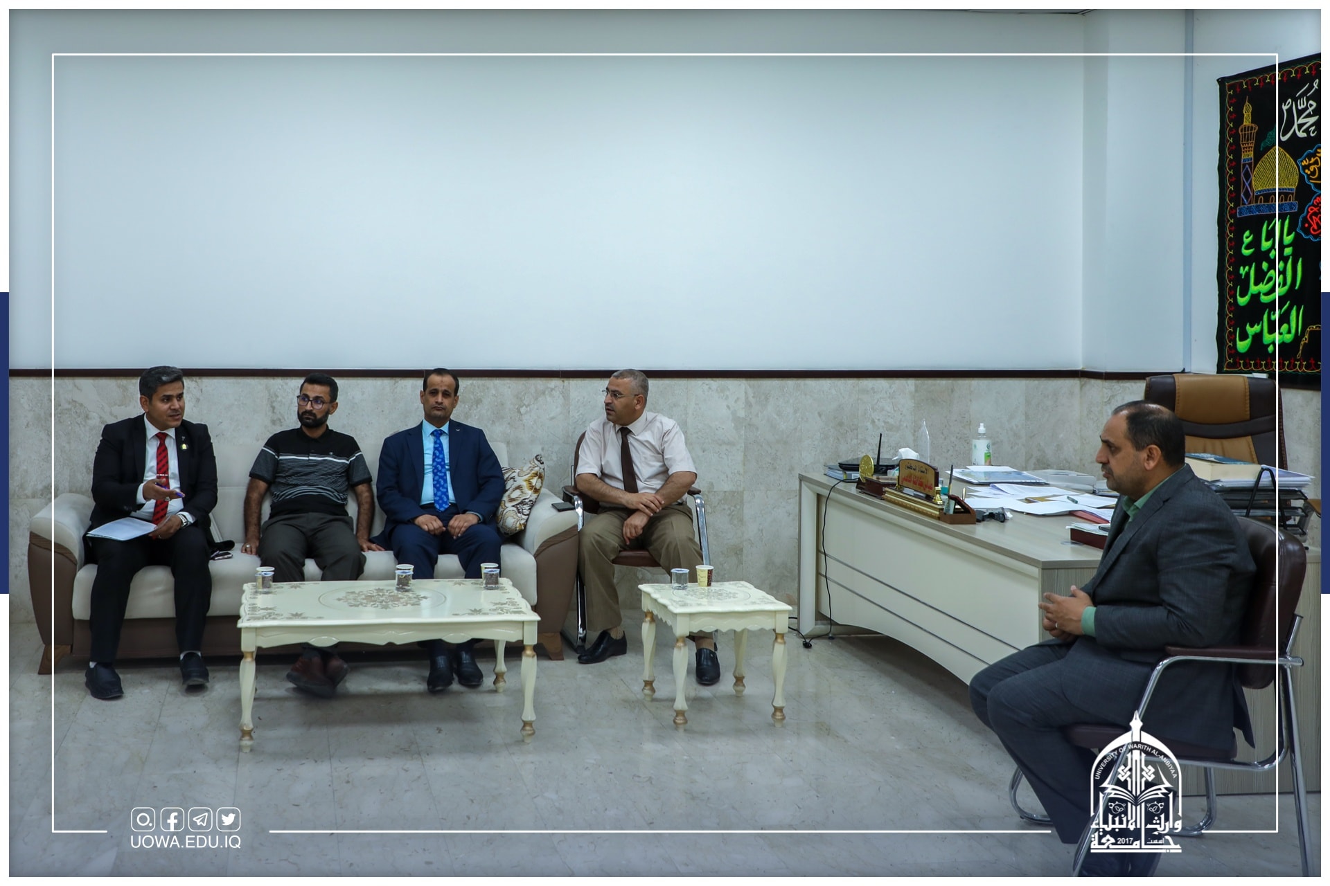 اجتمع السيد مساعد رئيس الجامعة للشؤون العلمية الاستاذ الدكتور عباس الدعمي مع ممثلين عن كلية القانون في جامعة وارث الانبياء ونظيرتيها في جامعتي كربلاء والمثنى.