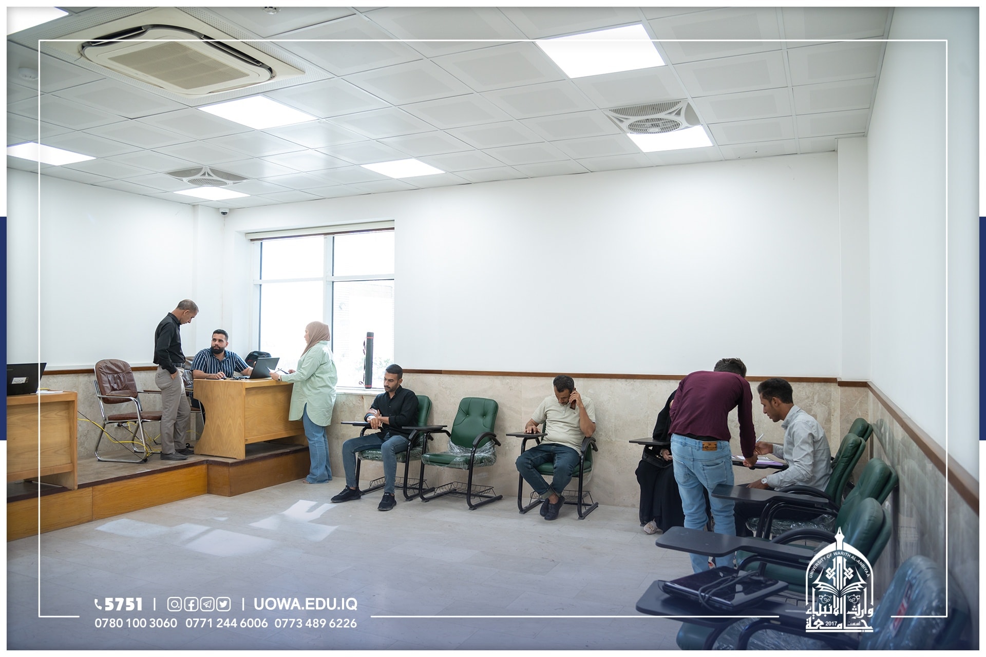 قسم التسجيل في جامعة وارث الانبياء(عليه السلام) مستمر باستقبال الطلبة الاعزاء الراغبين بالتقديم على كليات واقسام الجامعة حيث تضافرت جهود العاملين في القسم والأقسام المسانده له وعلى مدار أيام الاسبوع وأيام العطل(الجمعة والسبت) ومن الساعة ٨صباحاً الى ٥مساءً.