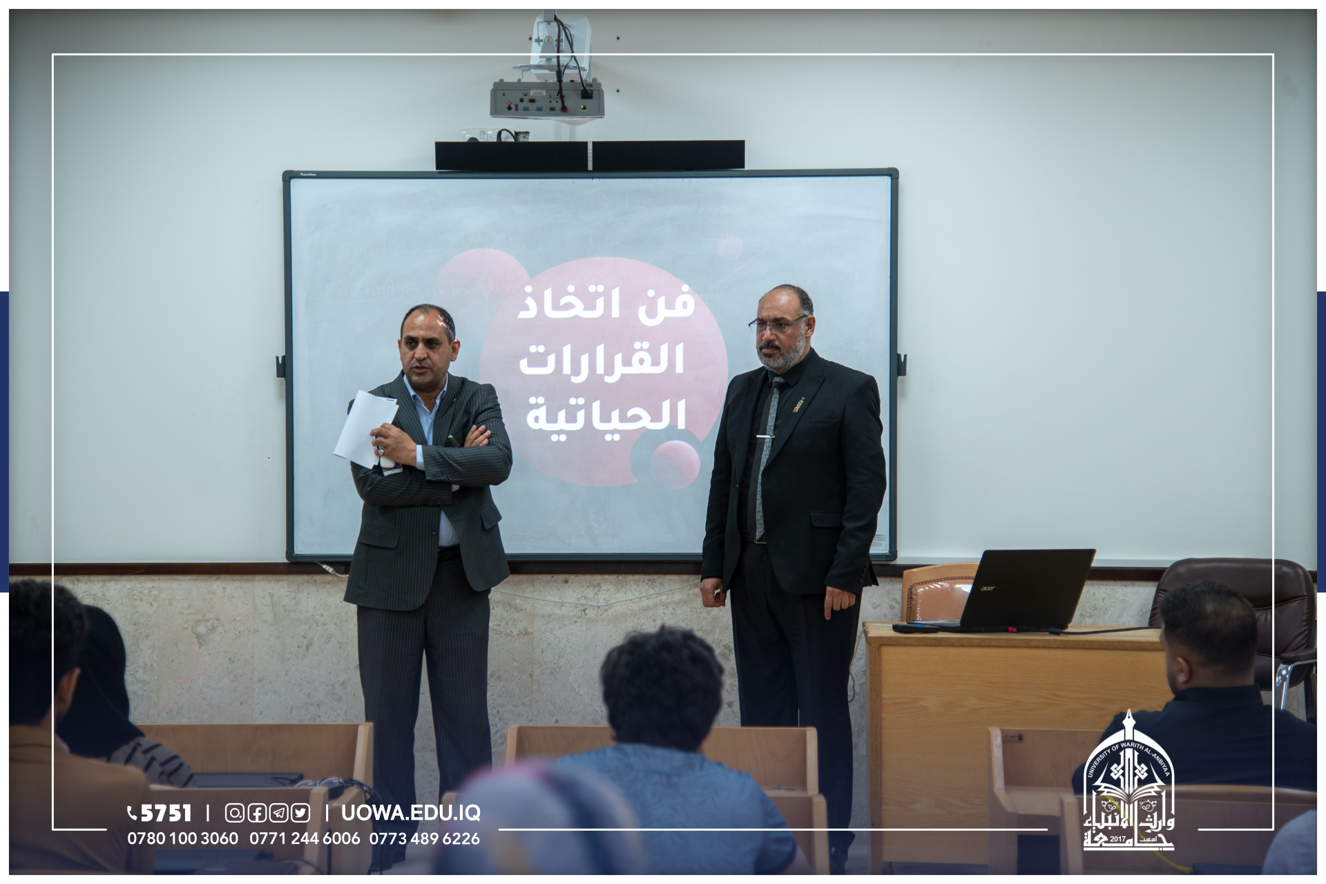 بدء أولى محاضرات البرنامج التدريبي الذي أطلقه مركز التعليم المستمر ضمن برنامج (طلبتنا قادة المجتمع) في جامعة وارث الأنبياء (عليه السلام) لطلبة الجامعة ،ابتداءً من يوم الأحد المصادف 9/10/2022، ولمدة تسعة ايام.
