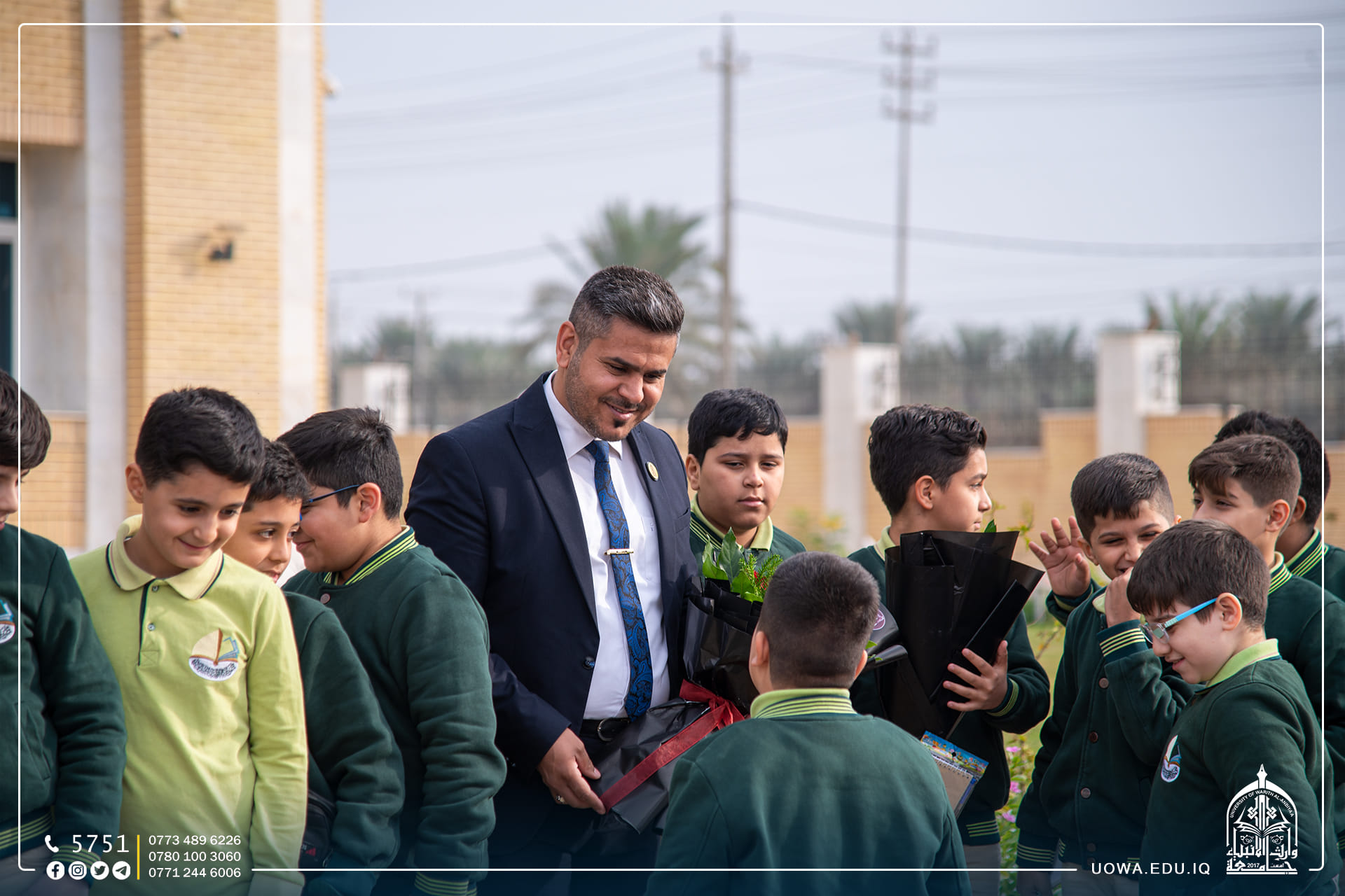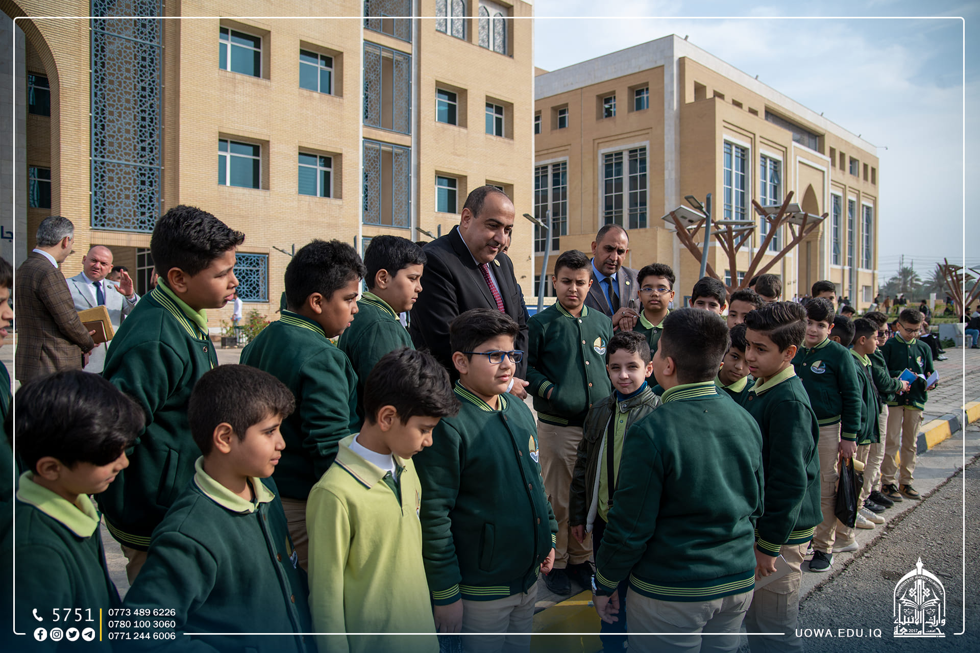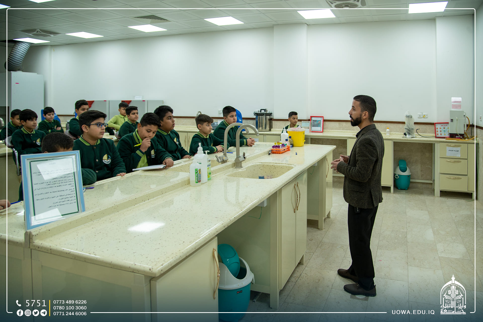استقبلت جامعة وارث الأنبياء (عليه السلام) عدد من طلبة مرحلة الخامس الابتدائي في مدرسة الق الوارث الابتدائية التابعة للعتبة الحسينية المقدسة، وتجول الطلبة في أروقة الجامعة وكلية التمريض واطلعوا على المختبرات العلمية فيها، وتم تقديم شرح مختصر عن مختبر الكيمياء والتشريح، إذ تساهم هذه الرحلات في تنمية مهارات الطلبة، وفي نهاية السفرة خط الطلبة رسائل شكر الى الجامعة بأناملهم اليافعة، عبروا من خلالها عن التفاصيل الجميل التي شاهدوها في الجامعة بأنامل بريئة .