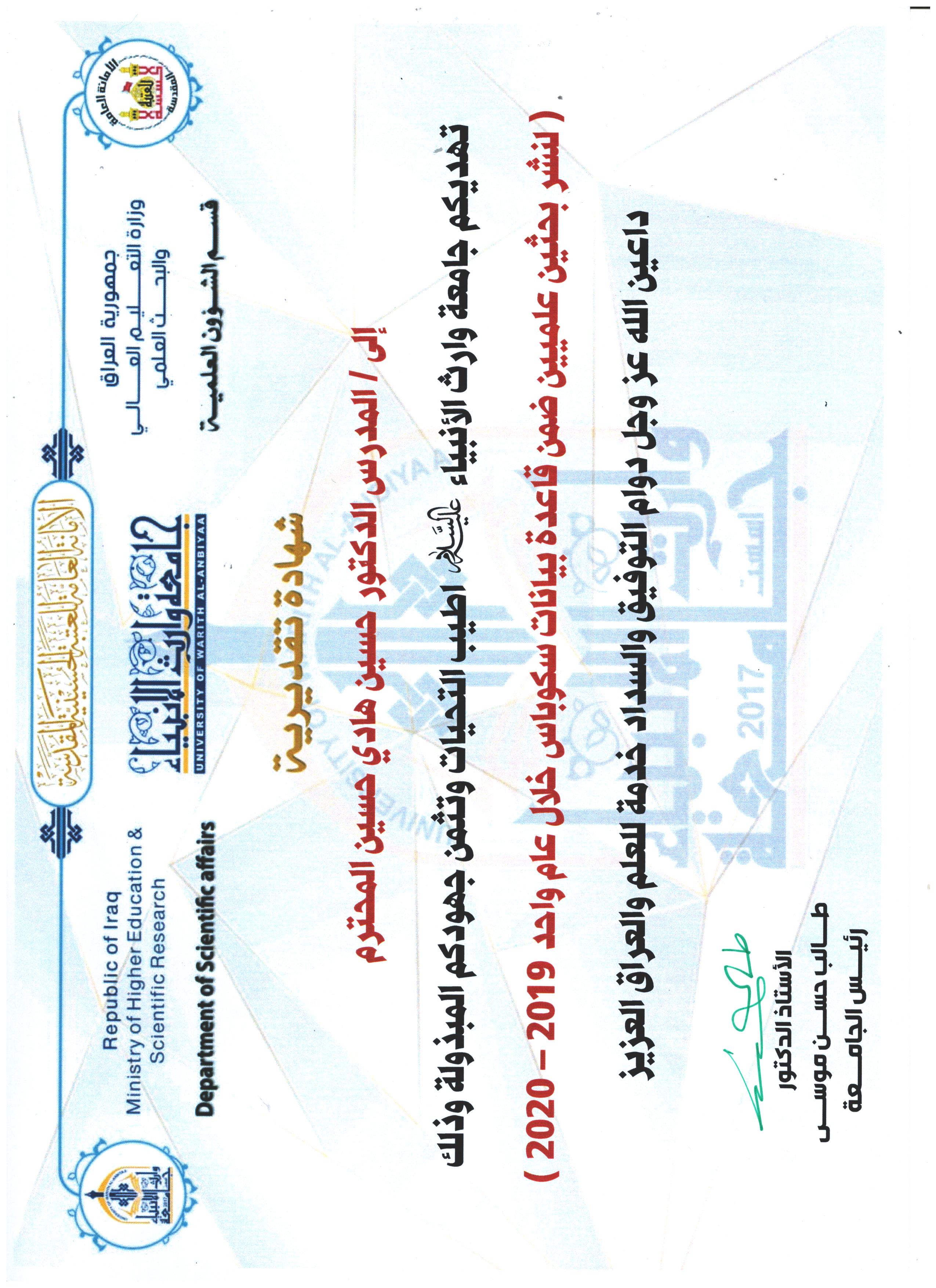 رئيس جامعة وارث الأنبياء يلتقي طلبة كلية العلوم ويكرّم جهودهم في المواظبة المبكرة على الدوام