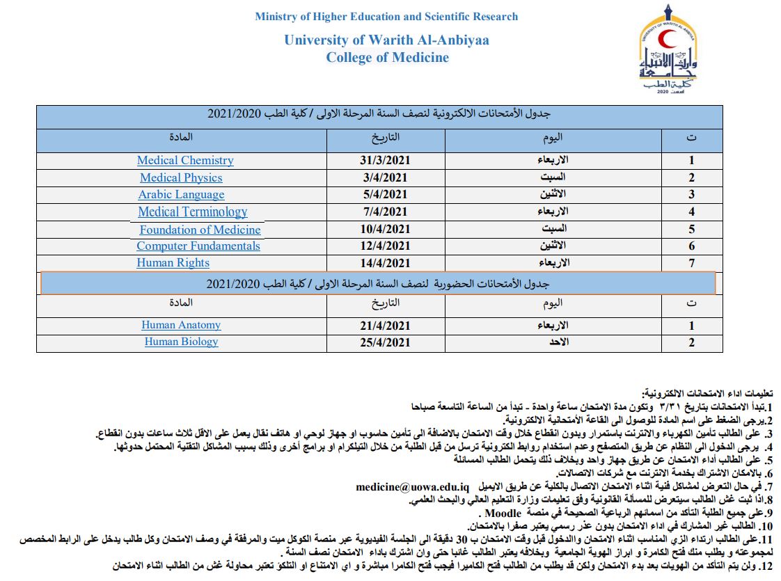 الامتحانات الاكترونية لنصف السنة لطلبة كلية الطب في جامعة وارث الانبياء (عليه السلام)