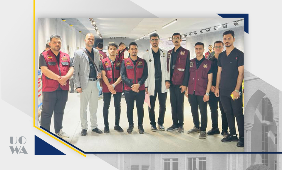 شارك عدد من طلبة كلية الطب في جامعة وارث الأنبياء (عليه السلام) ضمن الكوادر الطبية في مفارز مستشفى سفير الإمام الحسين (عليه السلام) التخصصي، لتقديم الخدمات الصحية والإسعافات الأولية لزائري الإمام الحسين وأبي الفضل العباس (عليهما السلام)، خلال مراسم تبديل الراية في الأول من محرّم الحرام.
