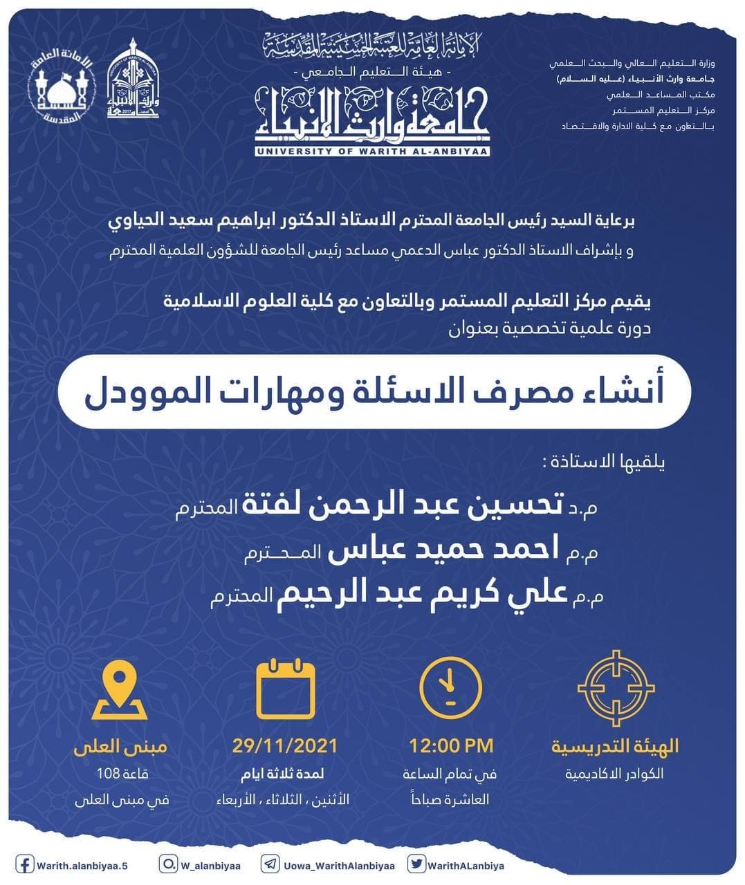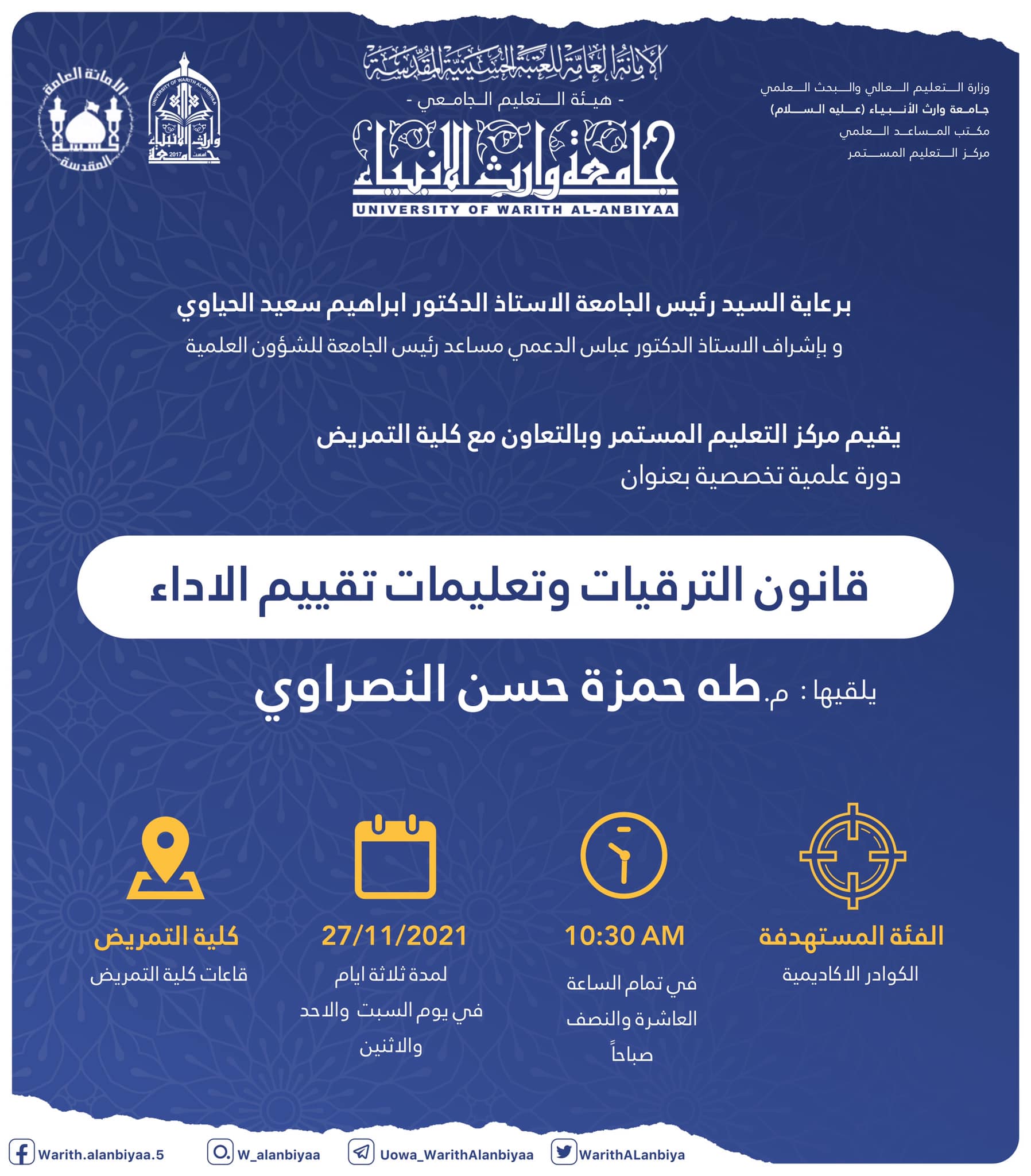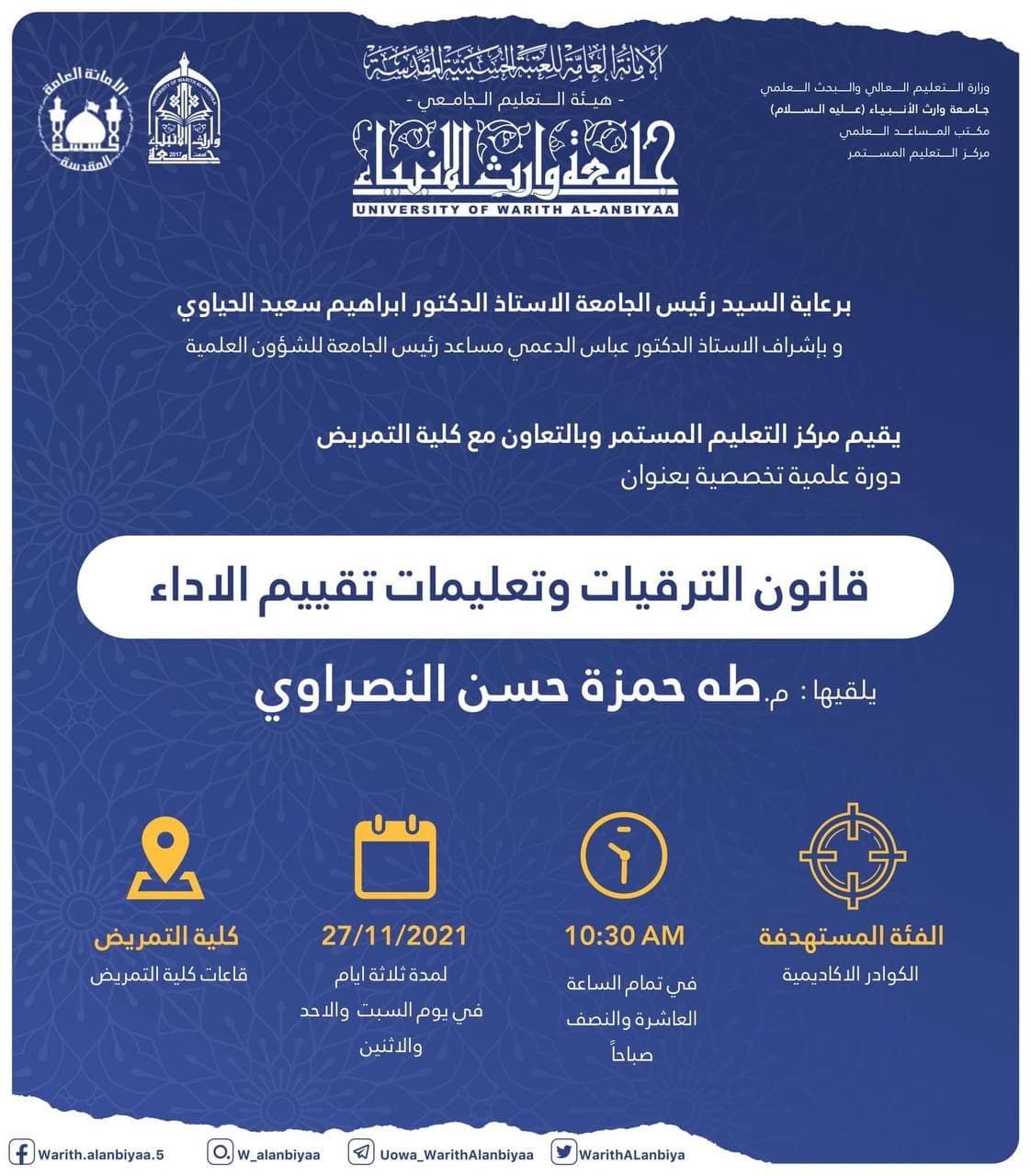 اقام مركز التعليم المستمر في جامعة وارث الانبياء (عليه السلام) بالتعاون مع كلية الهندسة / قسم الهندسة المدنية
