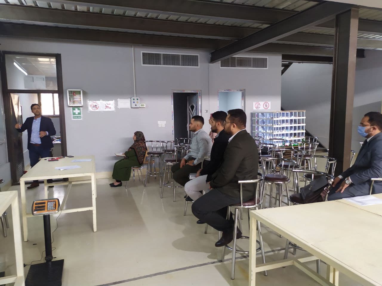 الجزء العملي تضمن المسوحات الأولية للمواقع وطرق توزيع أماكن الجهاز وبحسب الإمكانيات المتوفرة في الجهاز و مقارنه نتائج المسوحات بالأجهزة التقليدية مع النتائج التي تم الحصول عليها من جهاز اللفل. حيث ان الدورة استهدفت الكادر التدريسي والهندسي في الكلية.