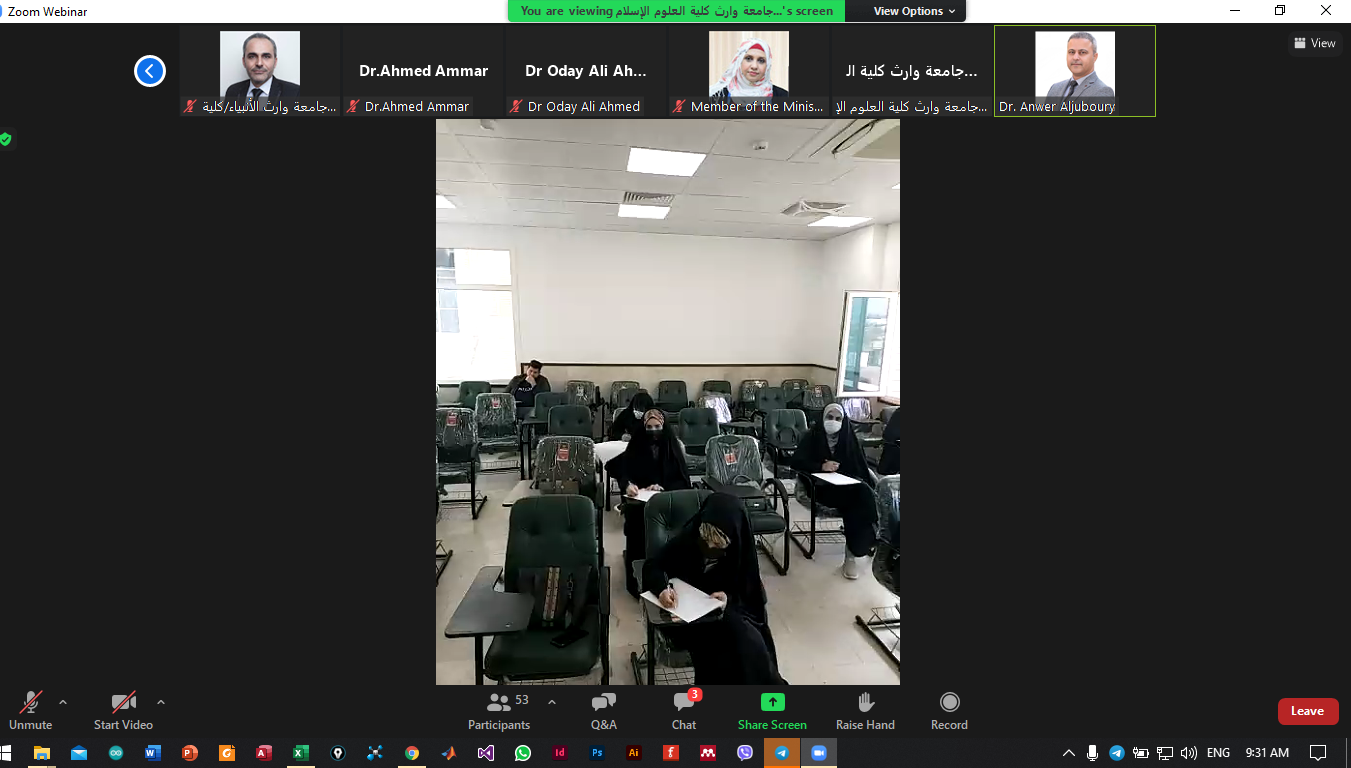 زار الفريق الوزاري للتعليم الالكتروني والمدمج جامعة وارث الانيياء (عليه السلام) الكترونيا يوم الاثنين الموافق 29/11/2021 في الساعة ( 9:00 ) صباحا للاطلاع على سير العملية التعليمية في الجامعة .