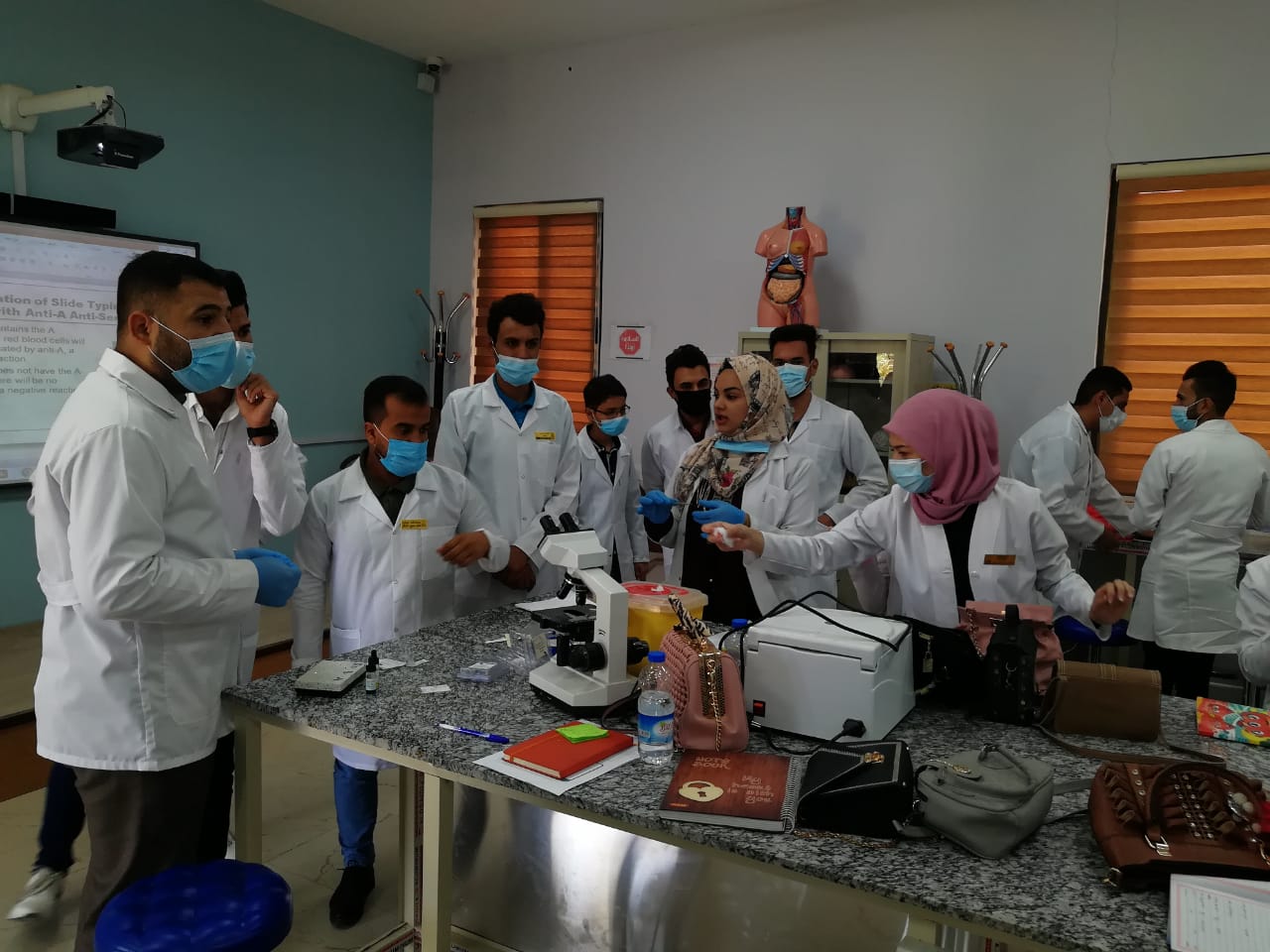 استمرار اكمال المحتوى التدريبي المقرر ضمن البرنامج التعليمي لطلبة كلية التمريض في جامعة وارث الانبياء ع في المحتبرات العلمية