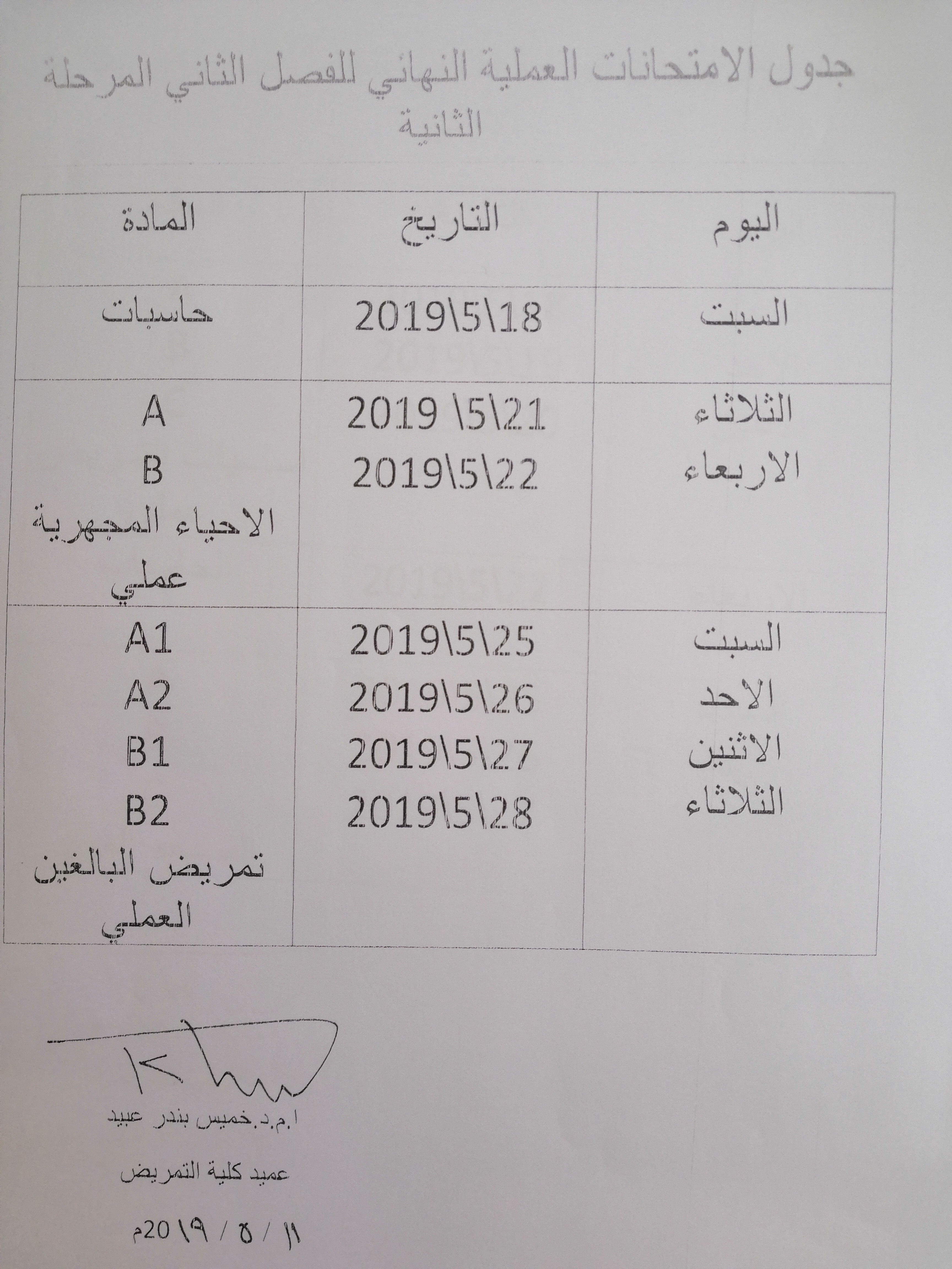اعزائنا طلبة المرحلة الثانية، سيكون يوم غد السبت الموافق ٢٠١٩/٧/٢٠ هو اول يوم للمباشرة في التدريب الصيفي في المستشفى،
