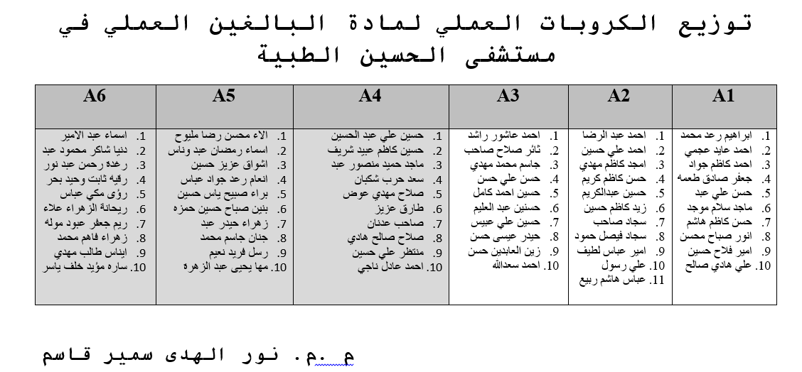 اعزائنا طلبة المرحلة الثانية اليكم التحديث الجديد لتوزيع الطلبة للتدريب الصيفي على ردهات المستشفى الحسيني