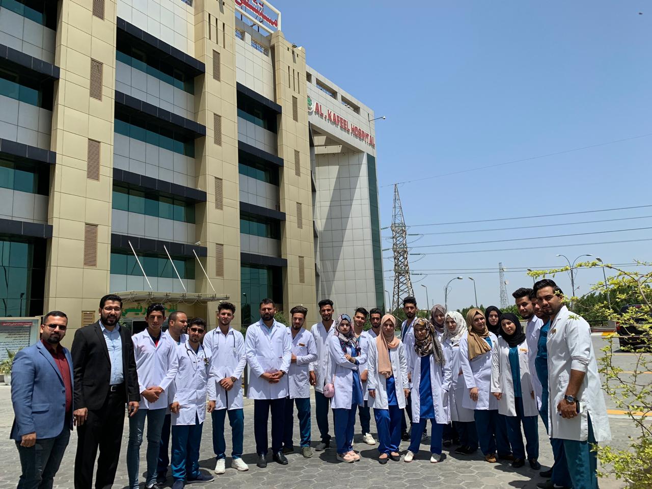 حيث كان باستقبالنا قسم العلاقات و الاعلام في المستشفى و مرافقة الوفد في جميع مرافق المستشفى حتى نهاية الزيارة و العودة الى الجامعة