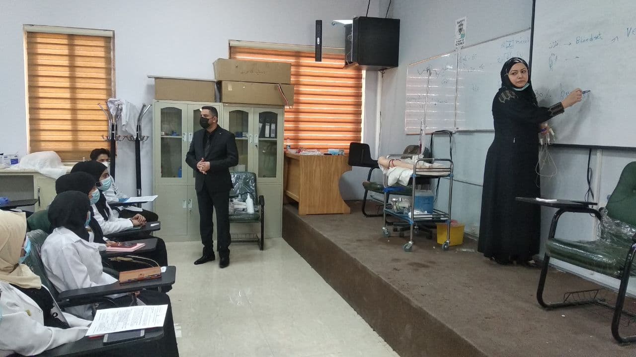 تابع الاستاذ المساعد الدكتور مرتضى غانم الجبوري عميد كلية التمريض التدريب العملي للطلبة الاعزاء وكذلك الاستماع لهم الوقوف على المعوقات التي تواجههم  اثناء التدريب
