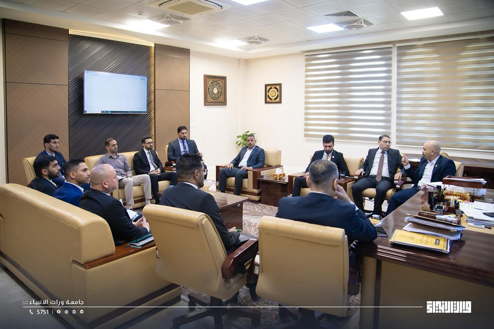 جاء ذلك خلال استقبال سماحته لرئيس الجامعة الأستاذ الدكتور إبراهيم سعيد الحياوي وأعضاء مجلس الجامعة، اليوم السبت، حيث اطّلع على أبرز المشاريع والإنجازات التي حققتها الجامعة، ومن بينها حصولها على المركز الثاني ضمن الجامعات المتميزة في جوائز يوم العلم العراقي لعام 2025، والذي يُعد إنجازاً وطنياً يُضاف إلى سجل الجامعة الأكاديمي.