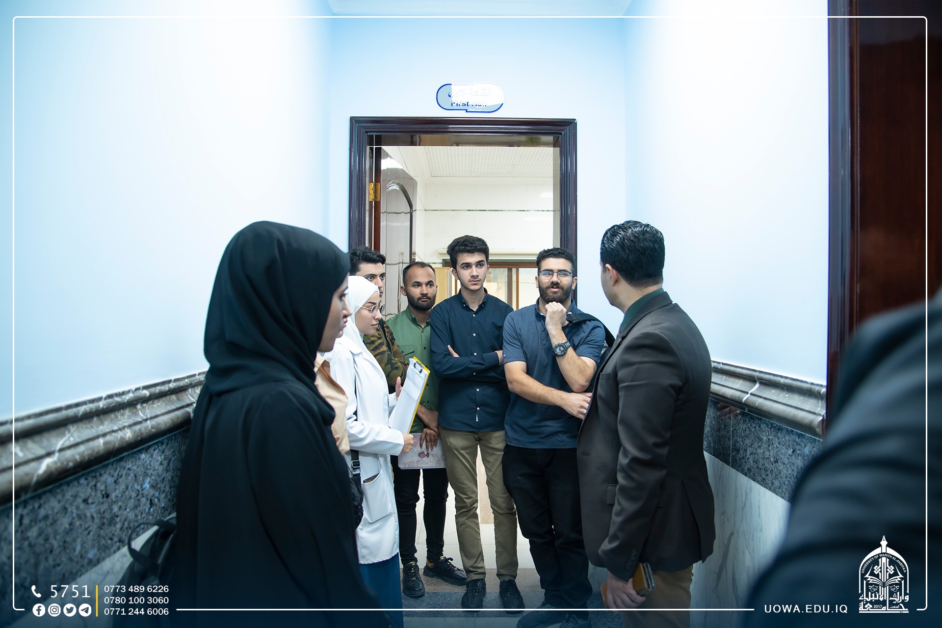 اجرى طلبة كلية الطب في جامعة وارث الانبياء(عليه السلام) برفقة السادة اعضاء هيئة التدريس زيارة علمية الى مركز "اعتلال الاعصاب والشلل الدماغي" التابع للعتبة الحسينية المقدسة، حيث قدم مدير المركز شرحا عن المركز وأقسامه، والأجهزة المتوفرة فيه.