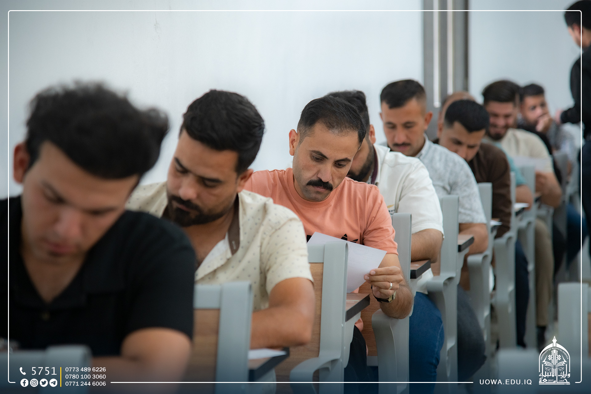 استقبلت جامعة وارث الانبياء (عليه السلام) طلبة الدراسة الاعدادية في محافظة كربلاء المقدسة لأداء امتحاناتهم النهائية، حيث وفرت الجامعة جميع الإمكانات المادية والبشرية لإنجاح الامتحانات النهائية للطلبة في بناية الجامعة وقاعتها الدراسية المكيفة والمجهزة بشكل كامل لاستقبال الطلبة وتوفير اجواء مثالية لأداء الامتحانات.