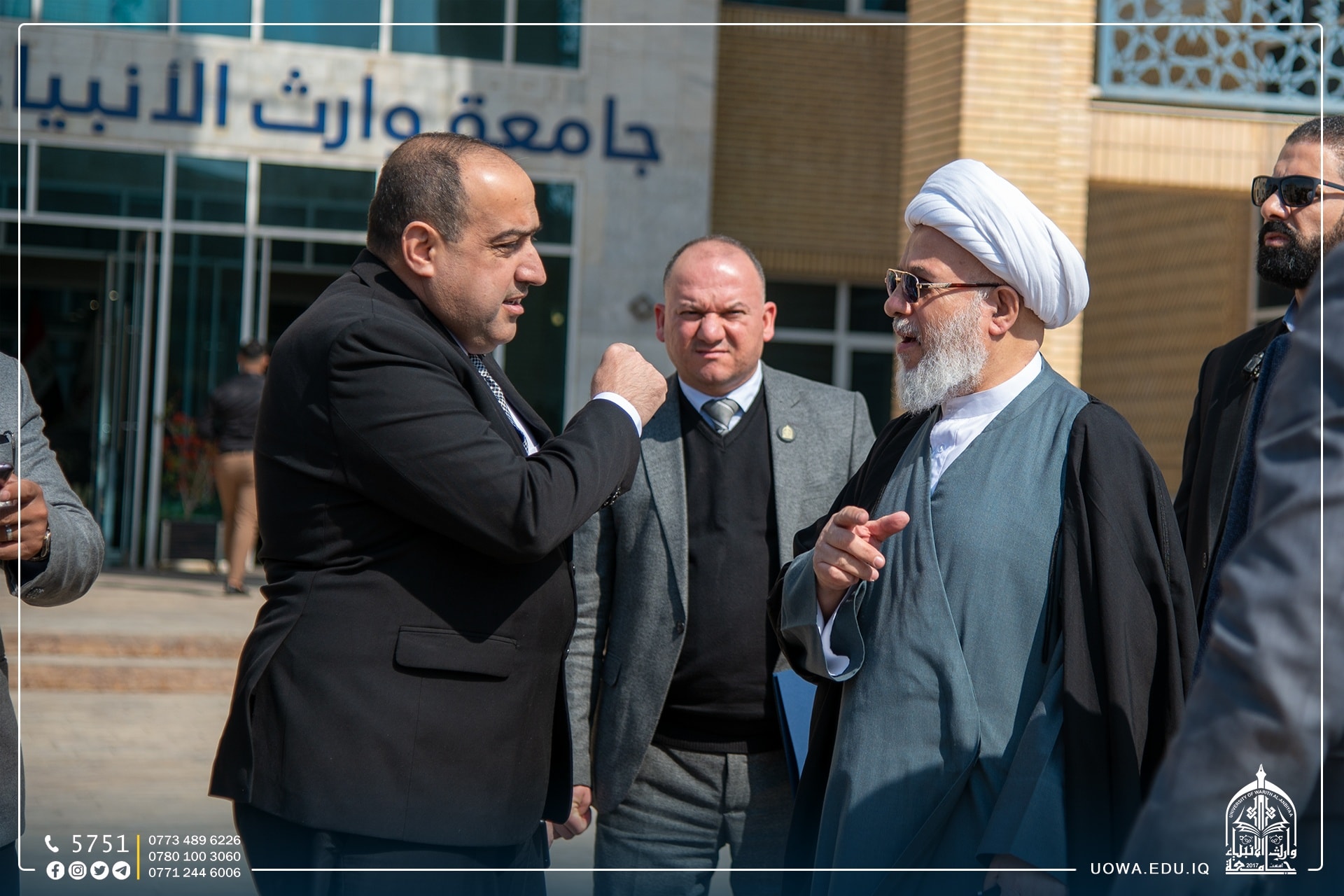 من أجل تعزيز التعاون العلمي في بنشر البحوث الرصينة بين جامعتي كربلاء ووارث الانبياء (عليه السلام)، زار السيد رئيس جامعة وارث الانبياء الاستاذ الدكتور ابراهيم سعيد الحياوي يرافقة المساعد الاداري الاستاذ الدكتور نوفل الاعرجي والوفد المرافق لهما جامعة كربلاء.