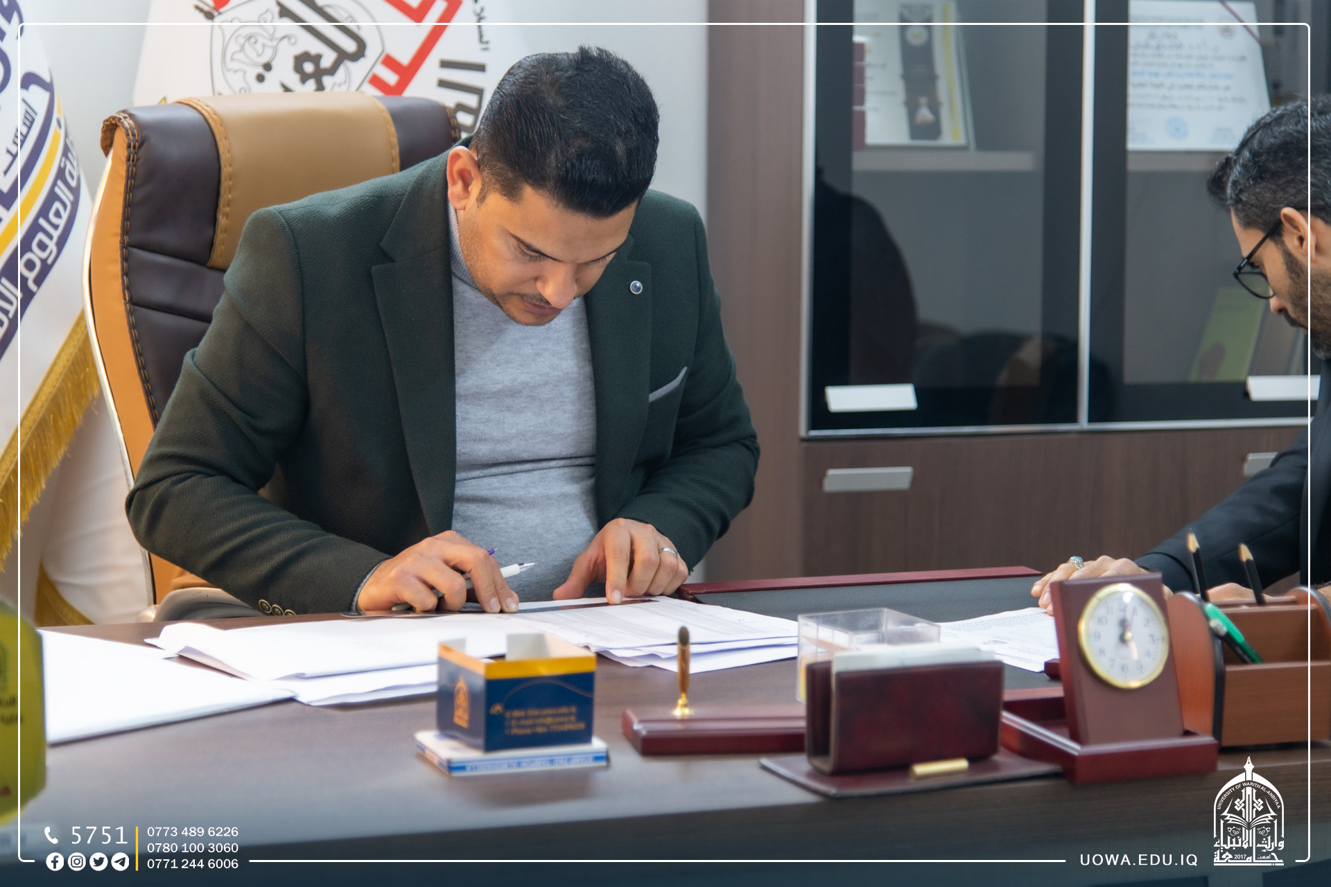 إذ كان باستقبالهم السيد رئيس الجامعة الاستاذ الدكتور ابراهيم الحياوي، وناقش الوفد التحضيرات الجارية لمهرجان ربيع الشهادة بنسخته السادسة عشرة الذي تقيمه الامانة العامة للعتبة الحسينية المقدسة وتعاون رئاسة الجامعة مع ادارة العتبة لانجاح هذا المهرجان الذي سيضم العديد من الشخصيات العلمية والاكاديمية والاجتماعية من داخل وخارج العراق.