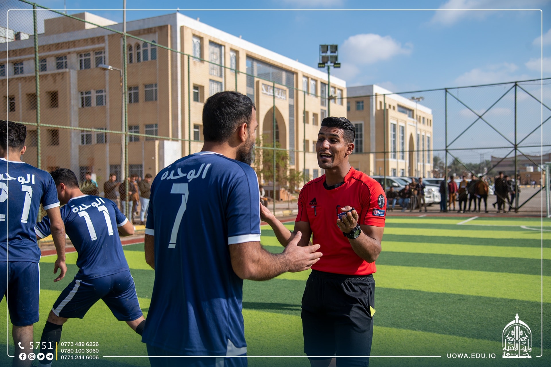 بعد تفوقها في المسابقة القانونية الأولى وحصولها على المركز الأول، كلية القانون تحصد لقب بطولة وارث الانبياء لخماسي الكرة التي يقيمها قسم النشاطات الطلابية بالتعاون مع مركز رعاية الشباب، بعد عدد من المنافسات الكروية مع فرق كليات واقسام الجامعة، وبهذا الانجاز تضيف كلية القانون انجاز جديد في سجلها الحافل بالانجازات العلمية والرياضية والفنية وغيرها