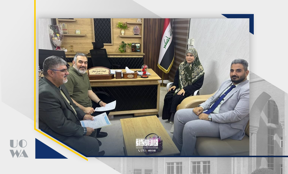 The President of the University of Warith Al-Anbiyaa, Dr. Ibrahim Saeed Al-Hayyawi, received a delegation composed of several faculty members from the College of Islamic Sciences at the University of Sulaymaniyah.