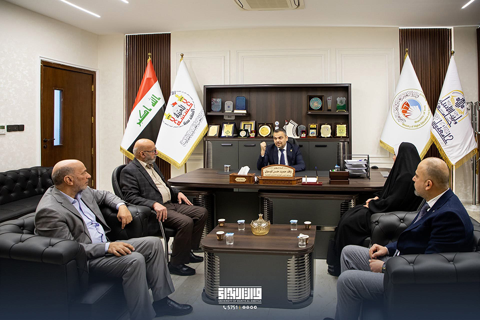 As part of its efforts to enhance academic and administrative partnership, the Assistant to the President of the University of Warith Al-Anbiyaa for Scientific Affairs, Professor Waqed Al-Moussawi, received Professor Hameeda Idan Al-Fatlawi, Dean of the College of Education for Pure Sciences at the University of Karbala, along with her accompanying delegation.