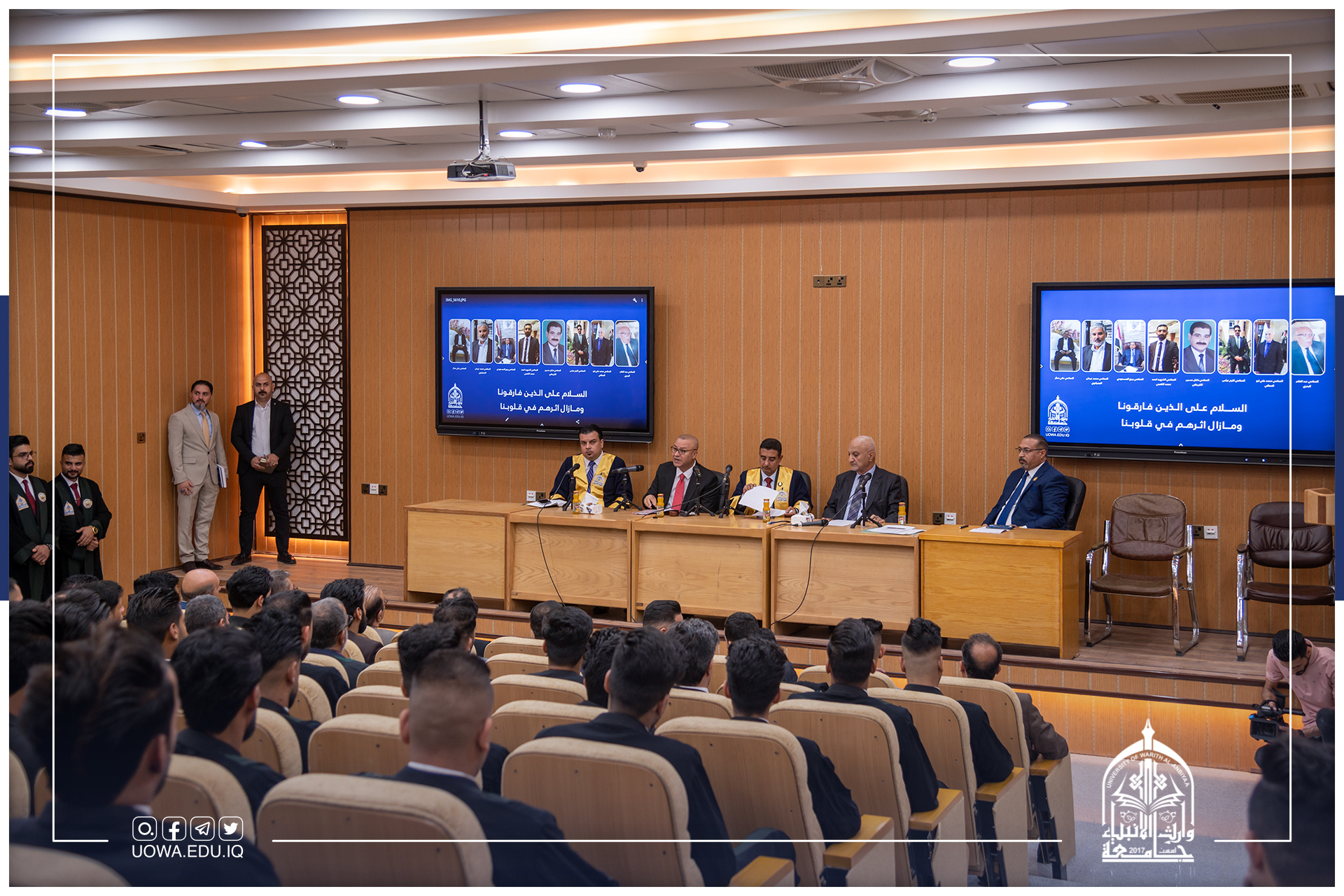 During the discussion, which was moderated by Dr. Sattar Al-Ghazzi, a faculty member at the College of Law, the Bar President addressed how lawyers must adhere to the fundamentals of professional conduct in dealing with clients and the judiciary. He also promised a number of privileges for lawyers in the holy city of Karbala, such as issuing ID cards outside the regular schedule and allowing them to receive medical treatment at Al-Ataba Al-Hussainiya hospitals at half the cost.