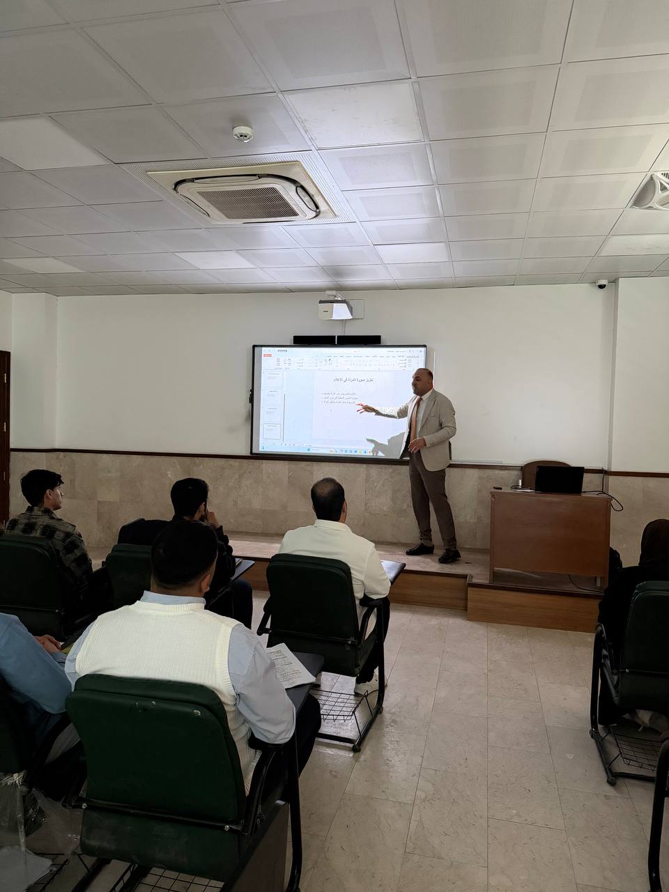 Under the patronage of the University President, Prof. Dr. Ibrahim Al-Hayawi, and the supervision of the Dean of the College, Assist. Prof. Dr. Ali Al-Sharifi, the College of Law organized a panel discussion titled "The Legal Profession: Between Reality and Aspiration." The session was presented by the President of the Iraqi Bar Association, Dr. Mohammad Saleh Al-Muhanna.