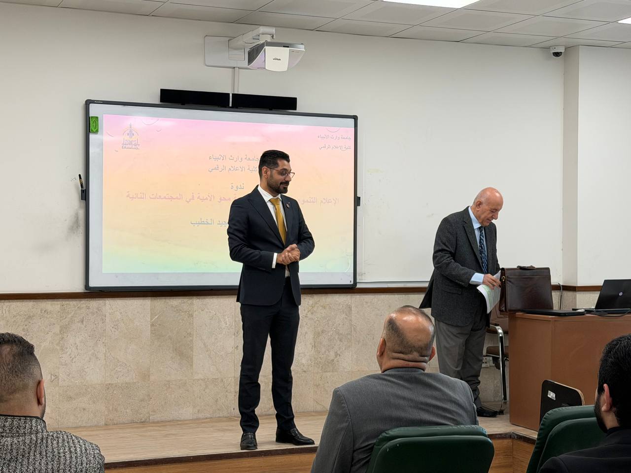 For his part, the University's Vice President for Administrative Affairs, Prof. Dr. Nawfal Al-Aaraji, spoke about the importance of investing in youth potential for the labor market and the university’s tireless efforts to support and implement strategic projects in the holy city of Karbala by attracting academic talent.