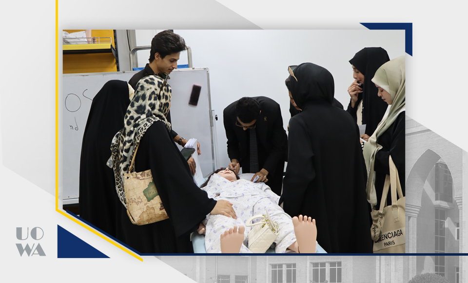 The College of Medicine at Warith al-Anbiya University (peace be upon him) organized a training workshop for its students, in preparation for providing medical services to pilgrims of Imam Hussein (peace be upon him) and Aba al-Fadl al-Abbas (peace be upon him) during the flag-changing ceremony of the two holy shrines on the first of Muharram. The workshop included lectures and practical training on first aid and emergency evacuation, in preparation for participation in this occasion, which witnesses a large public turnout.