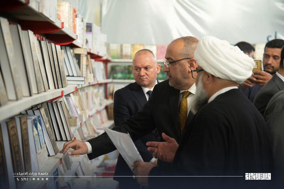 The President toured the exhibition halls, which featured a diverse collection of religious, intellectual, and cultural publications aimed at enhancing knowledge awareness and promoting authentic Islamic culture among students and the academic community, thereby contributing to the development of a conscious generation with mature thinking and solid human values.